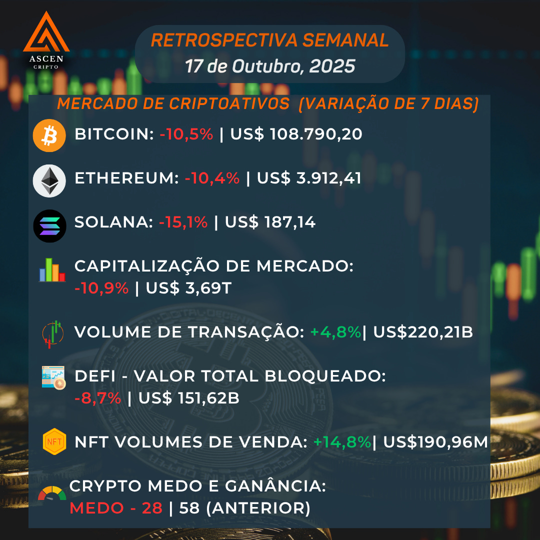 Durante a semana, o mercado cripto enfrentou uma das maiores correções do ano, desencadeada pelo anúncio de tarifas de 100% sobre importações chinesas a partir de 1º de novembro, feito por Donald Trump.