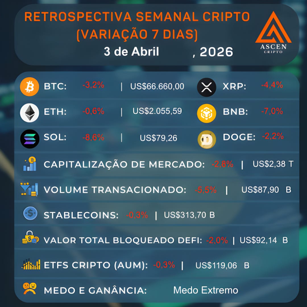 No mercado, o petróleo tipo Brent permanece acima de US$ 100, nível associado a ambiente de estagflação (baixo crescimento com inflação elevada). Ativos de risco, como ações e criptomoedas, têm reagido negativamente à alta do petróleo, refletindo deterioração das condições de liquidez e crescimento global.